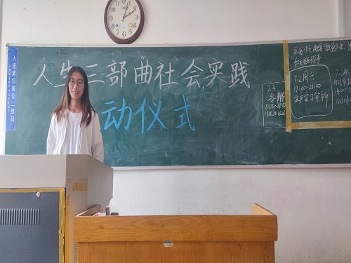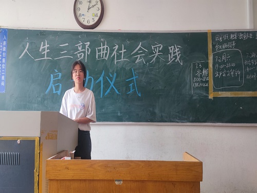7月6日下午,“人生三部曲”社会实践团在13号教学楼405教室举行启动仪式,此次启动仪式由“人生三部曲”社会实践团社会实践团队长于巾莹主持,团队全体成员共同参与。