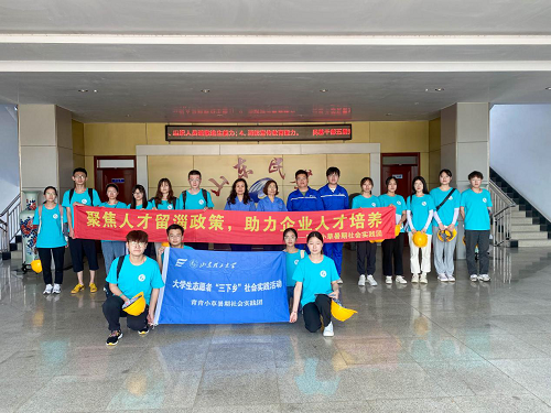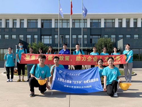 最后,“青青小草”社会实践团在一楼大厅与李红梅、耿云玲、姜万勇、孙冠群四位老师进行合影。此次参观调研,旨在通过分析留淄政策、就业形势,助力人才就业,为毕业生就业及企业招聘搭建交流窗口,促进双方交流。
